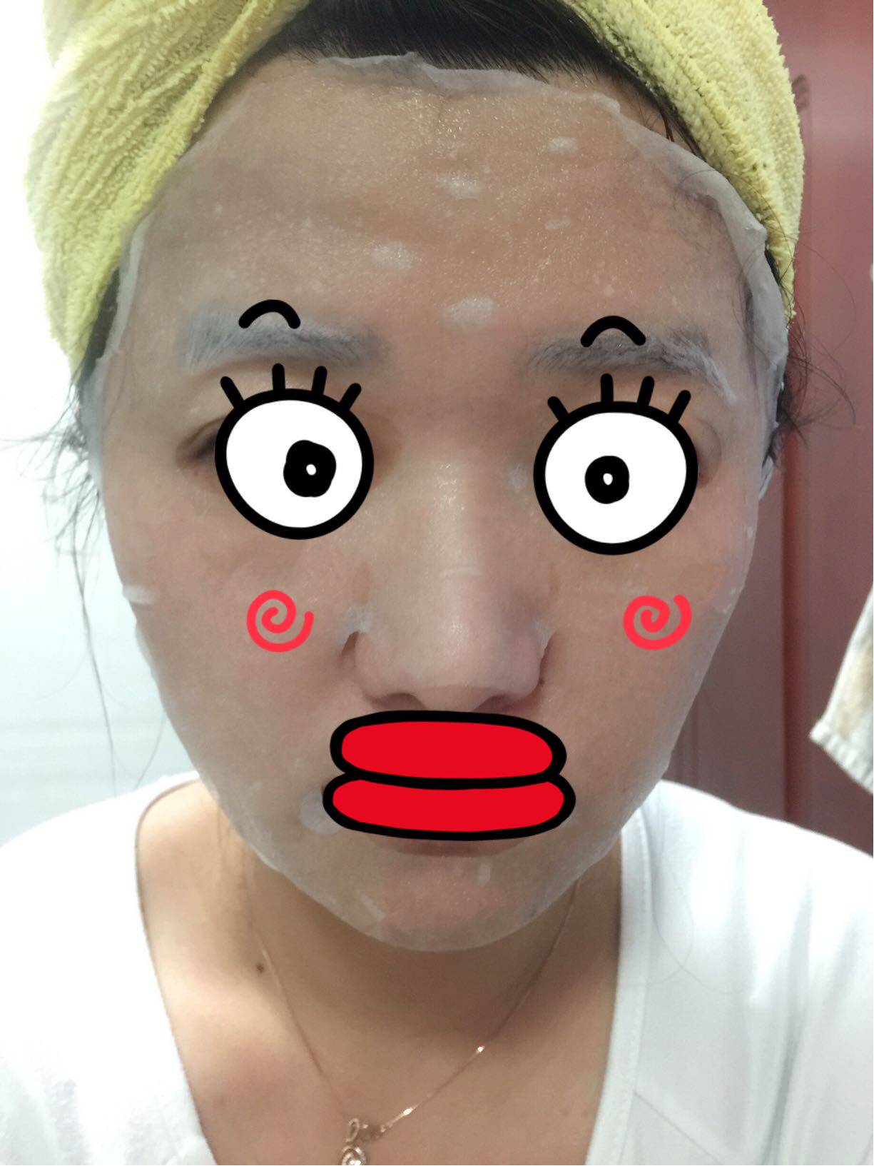 整张面膜的贴合度也相当不错,因为颜值不够,必须挡住眼睛和嘴巴~此处略掉了超多精华液的图片,发图的位置不够用…那么多的精华液还抹了脖子和手臂,一膜多用,能补的不只是脸,还有我的全身!超赞!